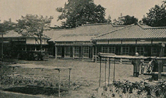 1911年(明治44年)10月、それまで幼稚園に間借りしていた小学校の校舎が新しく完成しました。東京の小学校で最初の全館スチーム暖房付きの建物で、普通教室のほか当時ではめずらしい雨天体操場、理科室、唱歌室 、図工室といった特別教室を備えたダークグリーンの木造二階建て校舎でした。生徒の粘土細工を焼く窯も設置されていたのは、陶器産業の第一人者である市左衛門が作った学校らしいところです。校内には市左衛門の教育観を反映してロバや山羊、クジャクなどの動物が飼われ、小さな動物園のようでした。また花壇には四季折々の花が植えられ、小さな池では冬になると児童が滑って遊びました。豊かな自然と触れ合いつつ成長していく森村っ子の原点が、ここにあります。小学校校舎が完成すると、河野先生に代わって、深井虎蔵先生が主事に就任しました。深井先生は国語の先生で、森村学園校歌の作詞者でもあります。この深井先生が、昭和の初めまでの20年近く主事を務め、二代目校長の森村開作先生と二人三脚で森村学園の基礎を作られたのです。