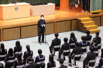 高校最後の1年間、皆さんはコロナ禍での大変な時を過ごしました。受験という人生の大事な時期に、たくさんのことが中止になったり変更になったりしていく。さぞかし不安だったことでしょう。しかし今、その1年を乗り越えてここに堂々と立っている皆さんに、心から拍手を送りたいと思います。