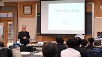 12月16日、国立天文台水沢VLBI観測所(岩手県奥州市)にご勤務され、測地学を専門に研究されている松本晃治准教授を本校にお迎えし、小惑星探査に関する講義を実施していただきました。