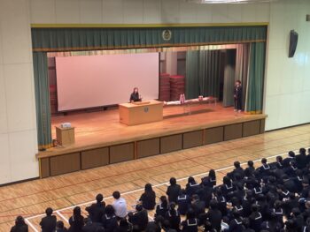 校長講話では、本校の建学の精神「独立自営」について改めて語られました。森村グループ各社がそれぞれの強みを活かし、次世代技術で協力し合う姿を例に挙げ、「自ら考え行動し、信念を持って歩むこと」の大切さを生徒たちへ伝えました。また、受験を控える高等部3年生には健康管理とポジティブな心を持つように、在校生に対しては、冬休み中も規則正しい生活と家族との時間を大切にし、3学期にまた成長した姿で再会しようと呼びかけました。