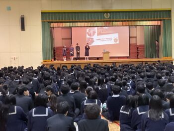 式の後には、2学期の英語学習の総まとめとなるレシテーション&スピーチコンテストが行われ、各学年の代表5名による見事な発表が披露されました。続いてターム留学から帰国した生徒たちの報告会、最後に高等部生徒会執行部選挙が行われました。