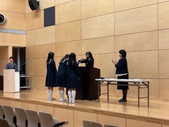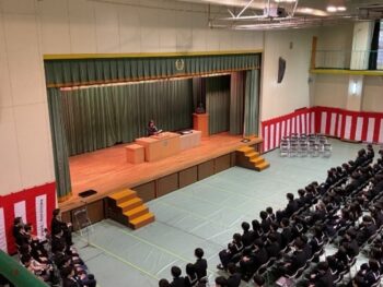 続く生徒の活動に対する表彰では、テニス部・バドミントン部・管弦楽部といった部活動で活躍した生徒をはじめ、漢字検定の優秀成績者など、多くの生徒たちが称えられました。それぞれの挑戦と努力の積み重ねが、一つひとつの結果として実を結んだことを改めて感じる今年度最後の終業式となりました。