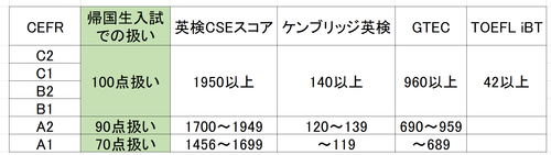 *上記以外の英語資格検定試験の場合は、中高事務室(045-984-2505)までお問い合わせください。