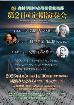 現在、中等部1年生から高等部2年生まで約80名で活動しておりますが、その部員のほとんどは中等部に入学してから楽器を始めました。今年も盛りだくさんのプログラムをご用意しております。是非皆様にもご来場いただき、生徒たちの雄姿をご覧いただければ幸いです。