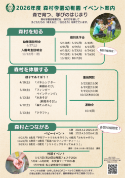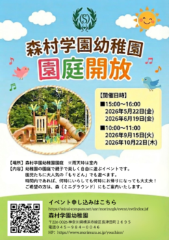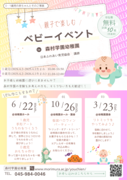 2026年度のイベント申し込みがスタートいたしました。「親子であそぼう」や「園庭解放」、「ベビーイベント」といった楽しいイベントや「個別見学会」や「説明会」といった幼稚園の様子を知ることができるイベントも企画しております。