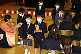 | 担任の先生から一人ひとりお祝いのお花をいただいて退場しました。 | 卒園式の後、保護者の皆さまが謝恩会に代わる会を行ってくださいました。 | 先生方の作るアーチをくぐって幼稚園にさようなら! |