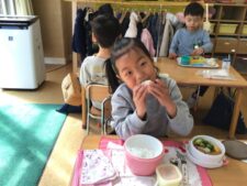 本日は、今年度最後のおにぎりの日でした。お家の方々が作ってくださったおいしいおにぎりをおいしそうに食べる子どもたち。かわいらしい笑顔がこぼれていますね。