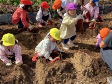 幼稚園から20分〜30分ほど歩いたところにあるお芋畑にお芋掘りに出かけました。