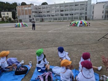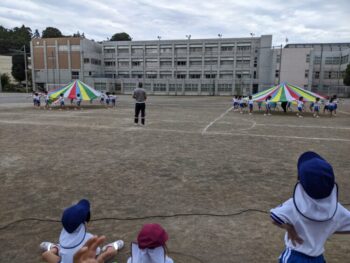 翌日、どんな様子が印象に残ったのか子どもたちに聞いてみると、「走るのはやかった!」「こういうのやってたよ。(組体操の技の真似しながら)」「あんなのできるのすごいねぇ。」と口々に話していました。