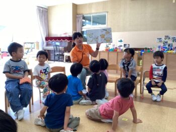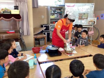 翌日、子どもたちと先生で絵本を見ながら作り方を確認します。