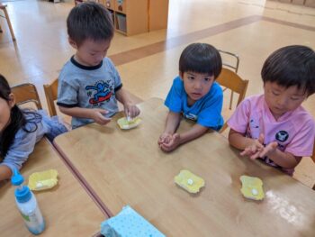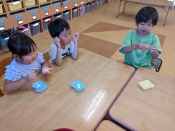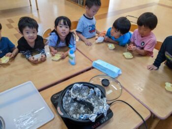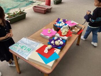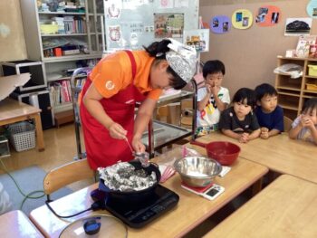 子どもたちのアイデアから、翌日の保育内容が生み出された瞬間でした。子どもたちの考えをできる限り実現したいと日々考えています。計画しているカリキュラムはありますが、子どもたちの興味関心に合わせて、調整しながら組み立てているので、今回のように、急遽追加や変更になることがあります。子どもたちと作り上げる毎日がとても楽しいです♪