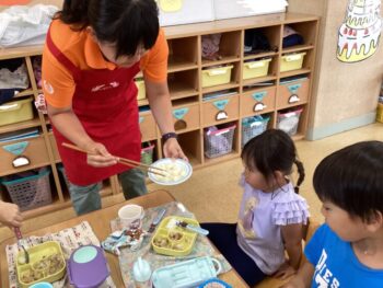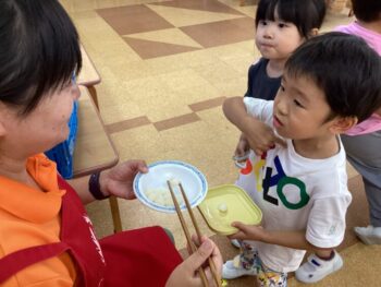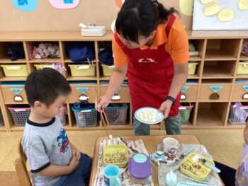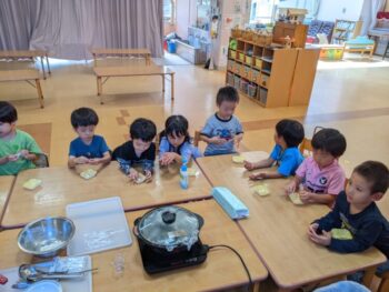 「お団子作ってみたいの?」と問いかけると、子どもたちから「ぼくもやりたい!」、「わたしも!」と盛り上がり、翌日お団子をみんなで作って食べることになりました。