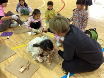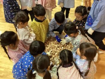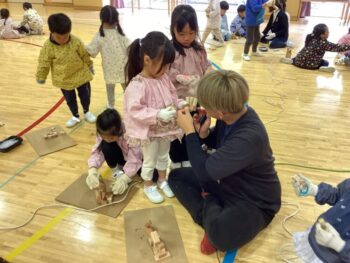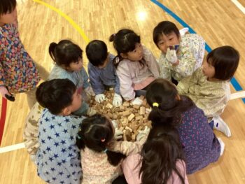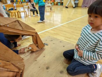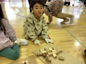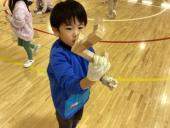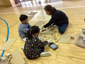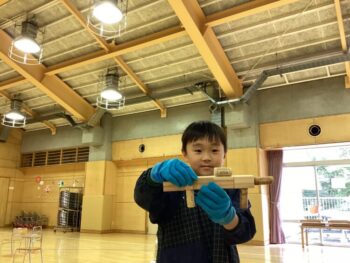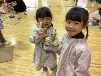年中菊組と年長藤組は実際に木の廃材を使って自由工作も楽しみました。桜組さんは廃材キットをお土産に持ち帰っています。ぜひ、ご自宅で親子で楽しんでみてください。