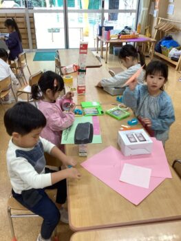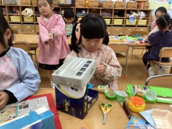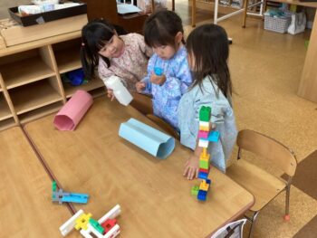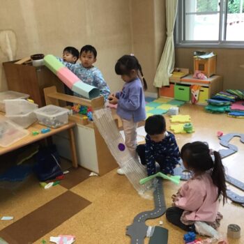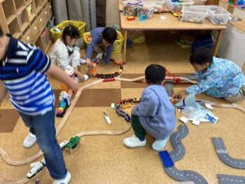また、いつも車や汽車で遊ばない子たちが夢中になって遊んだことでけんかも起こりましたが、お互い色々な気持ちがある、ということを知る良い機会となりました。