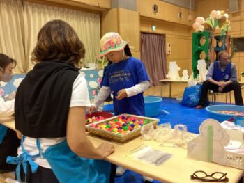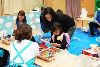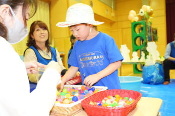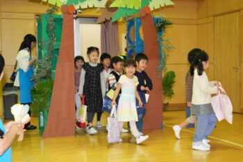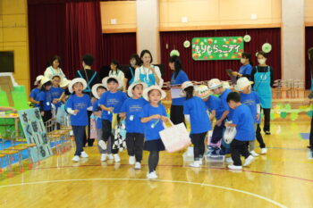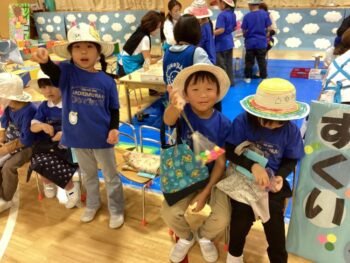 “もりむらっこデイ”とは、森村学園PTA・同窓会の皆様が森村学園の子ども達のために企画運営してくださっているお楽しみイベントです。当日は年少から年長の在園児と、未就園児クラスひまわりぐみのお友達も遊びに来てくれました。