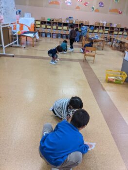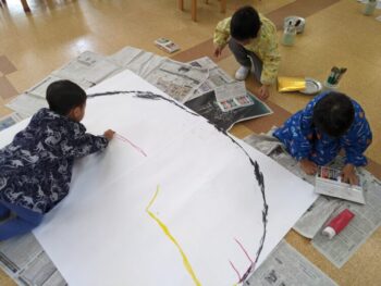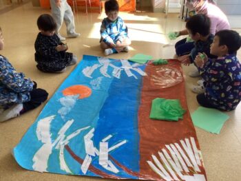 「海の中にはジンベイザメもいるよね!」と、子どもたちのイメージがどんどん膨らみました。