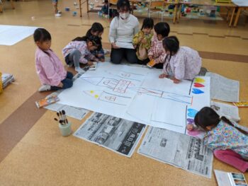 「こうしたい!」「こんなのはどう?」と、一人ひとりが自分の言葉で意見を出し、友だちのアイデアに刺激を受けながら世界がどんどん形になっていきます。