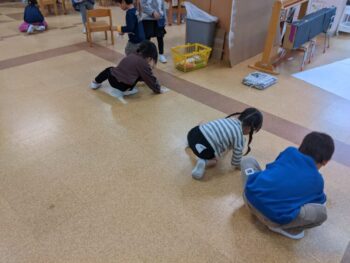 製作の後の片付けも、子どもたちと一緒に取り組んでいます。