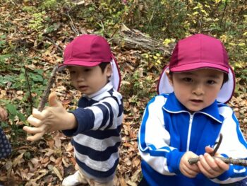 前日には、子どもたちが森で“燃えるもの探し”をしました。