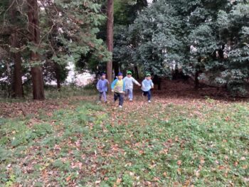 森村学園の広大な自然を生かした森あそびをより深めるために、今年度、書籍『野外で算数』の翻訳者であるラーニングアウトドアの山本幹彦様、山本風音様による教職員向け研修を実施しております。その学びを日々の保育にも取り入れ、子どもたちは森の中でおもいきり遊びながら、算数分野の言葉の獲得や「見つける・比べる・数える・測る」を経験しています。
