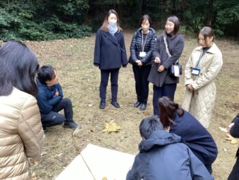 書籍『野外で算数』の翻訳をなさったラーニングアウトドアの山本様親子による保護者の方向け森のイベントが、本日行われました。ミニグランドに行き、参加してくださった保護者の皆様に「野外で算数」を体験していただきました。長さ比べ、重さ比べ、仲間分けなどを行い、子どもたちに負けないくらい盛り上がりました。また、「野外で算数」を行うことが、子どもたちにとってどんな意味を持つのかも山本様からお話しいただきました。最後のディスカッションの時間も、保護者の皆様から色々なご意見やご質問をいただき、有意義なものとなりました。森村学園幼稚園が取り入れている活動について、保護者の方にも知っていただくきっかけになったら幸いです。