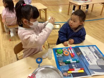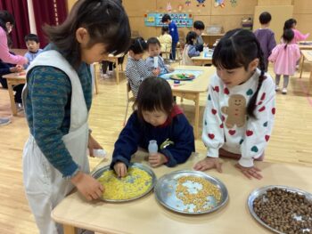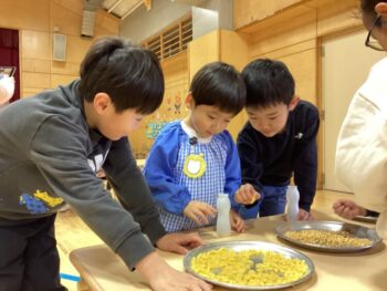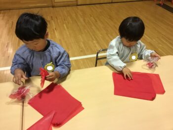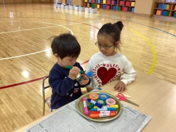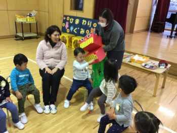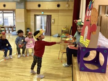3学期も元気に幼稚園に来てくれているひまわりぐみさん。1月は凧を作って園庭で凧揚げをしたり、節分に向けて鬼のお面を作って鬼退治ごっこをしたり、藤組のお兄様お姉様と一緒に遊んだりと色々な経験をしました。お友だちのお名前を覚えたり、一緒に遊んだり、協力してお片付けをしたりと、子どもたち同士の関りが少しずつ増えてきたことも嬉しく思います。