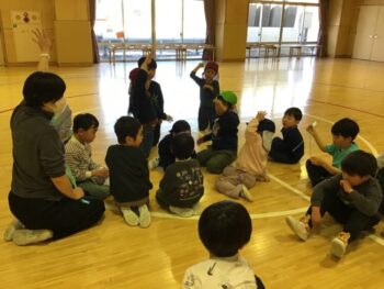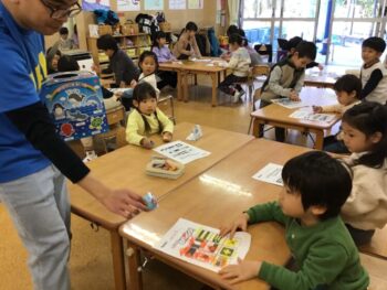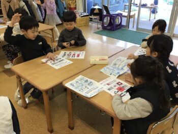 3回行い、テーマが生き物→幼稚園にあるものと段々レベルアップし、最後は国旗に関するビンゴでした。3回全て参加する子もいました!