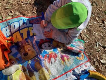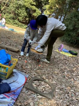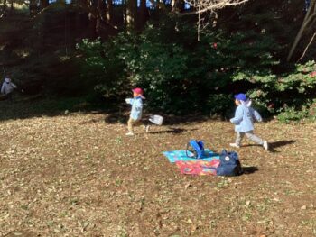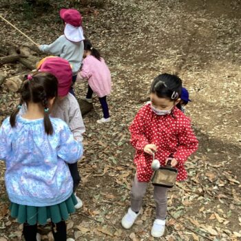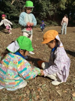 お部屋で凧作りを楽しんだ子もいましたが、森に行ってから「やっぱり私も作りたい!」と森で凧作りをして凧揚げを楽しむ子が沢山いました。