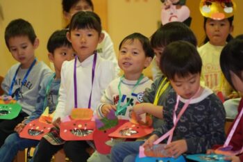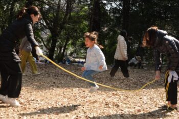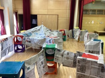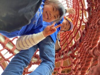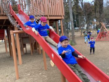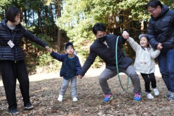 年少桜組は新聞紙あそび、年中菊組は森で色々なアクティビティを行いました。親子で楽しい時間を過ごし、笑顔溢れる一日となりました。