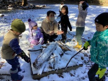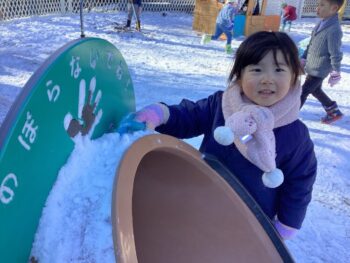雪が降った翌日。子どもも教員もみんな雪あそびに夢中になりました。