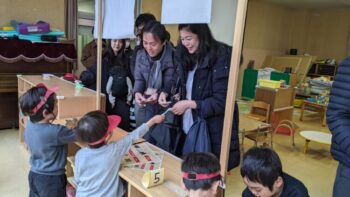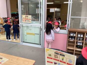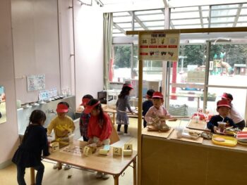 おままごとを楽しむ子どもたちの中から、「いらっしゃいませ!」という声が響きました。