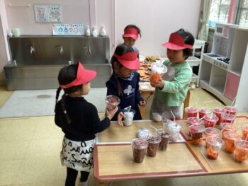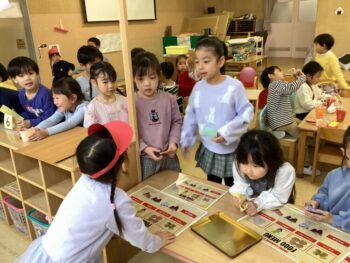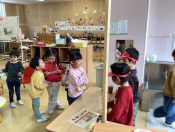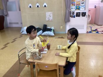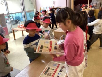 その経験が次の工夫につながり、注文をよく聞くようになり、間違えないよう確認する姿が見られるようになりました。あそびの中で、相手の立場を考える力が育っています。
