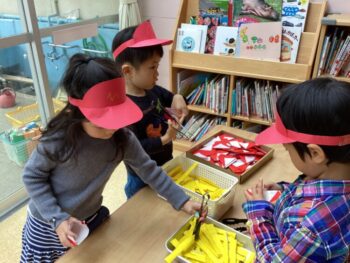 繰り返し作るうちに、切ることも貼ることも、どんどん上達していきます。あそびの中で、自然と技術が磨かれていきました。
