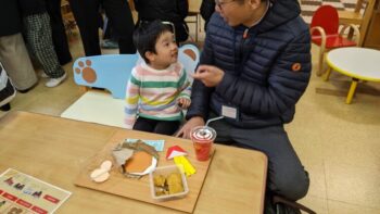 「ポテトが落ちてる」「お店が散らかってるよ」「返却が溜まってる」と自ら気づき、整える姿も。誰かに言われたからではなく、必要だから動く。小さな社会が、保育室の中に生まれていました。