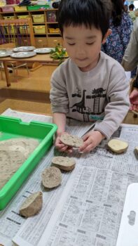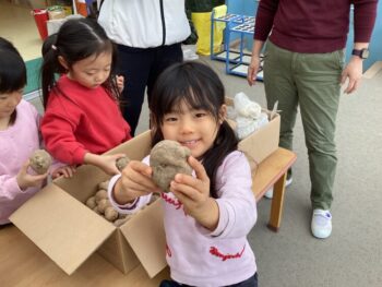 農薬を使わずに育ててくださるそうです。「じゃがいもさん、元気に育ってね!」「お世話お願いします。」とご挨拶をして、園に帰ってきました。
