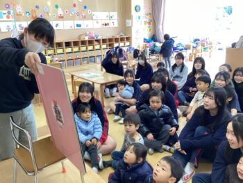 期末テスト終了後、有志の中学3年生が年少桜組の子どもたちに会いに来てくれました。