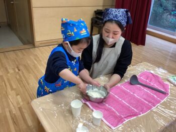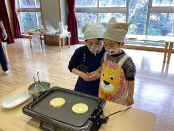 先日、幼稚園より一足早く、2025年度のひまわりぐみが終了いたしました。週1回の開催でしたが、子どもたちは色々なことができるようになりました。お父様お母様と離れて、ひまわりぐみに通う経験もし、心も成長しました。とは言え、まだまだ小さな小さな可愛い子どもたち。これからも子どもたちが健やかに成長していくことを願っております。 ☆絵本『こぐまちゃんのほっとけーき』を読んでホットケーキを作りました☆ ひまわりぐみの教育にご理解ご協力いただいた保護者の皆様、ありがとうございました。