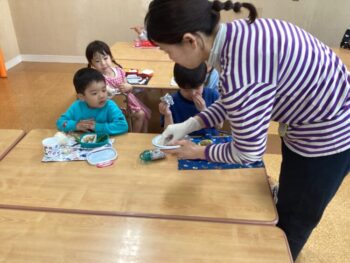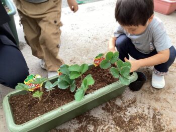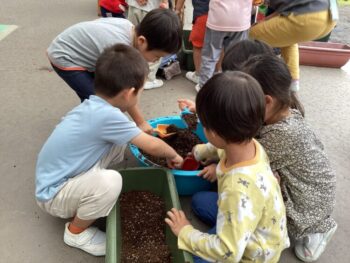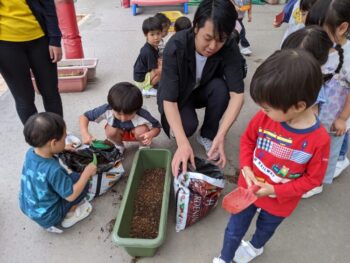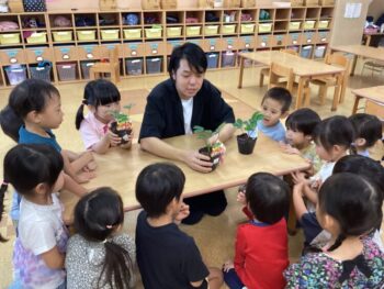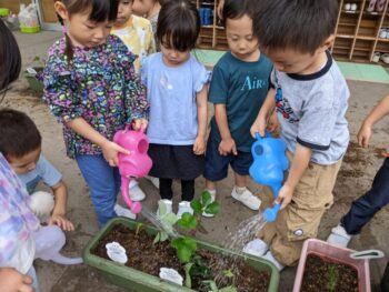 今日まで、お当番さんが毎日欠かさず水やりを頑張り(春休みは先生たちも頑張りました!)、みんなで「美味しくなぁれ」と見守り続けてきました。