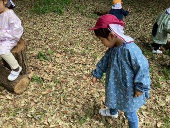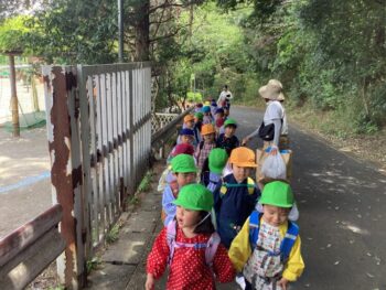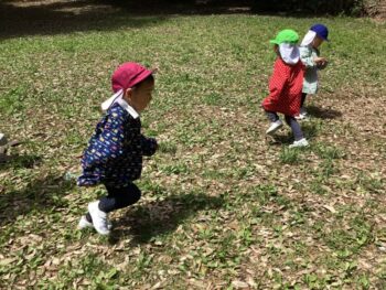 今日は初めて桜組さんだけでお散歩に出掛け、ミニグラウンドで遊びました。