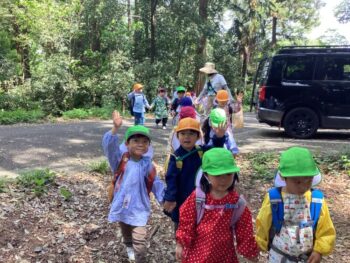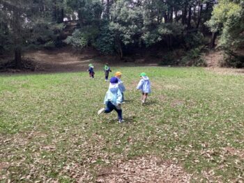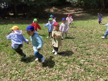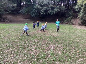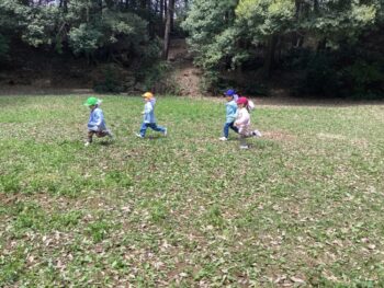 みんなで並んで歩く経験をし、ミニグラウンドで思い切り走り回りました。