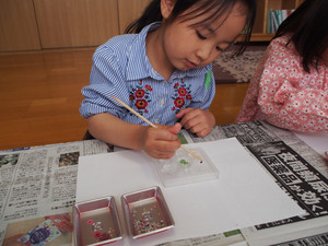 あゆみ先生が見本にもってきてくださった作品や、お友だちの完成した宝石を見て、「キレイだね~」と、一緒に喜び合える子どもたちの言葉で、しあわせに満ちた空間となりました