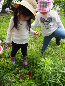 最近の子どもの森は、初めての桜組さんや久しぶりの藤組さんが遊びに来てくれて毎日がとっても賑やかです。 お部屋ではレストランごっこ、病院ごっこ、はちごっこ、外あそびではおままごとやチョークでお絵かきなど。 一日存分に遊んでいる子どもたちです。 今日のあそびの様子です。 ↑レストランで食べられる特製「お顔ピザ」 大きなきのこ発見! 明日も子どもの森でお待ちしております。
