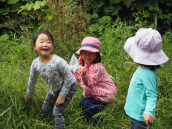 今日はいつもより涼しく、過ごしやすい一日となりました。 お庭では秋の虫を探したり、まだ青い柿の実を拾ったり、少し早い秋を感じながら外で過ごしました。 今日のあそびの様子です。 明日も子どもの森でお待ちしています。