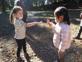 ↓ミニグランドで、みんなで「はないちもんめ」をしました。