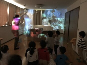 We went back upstairs to find the 🚣♂️; but this time the projection took us Under the Water!! We talked about the different animals that live in the ocean!