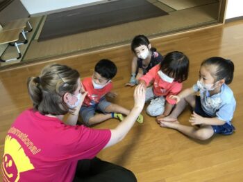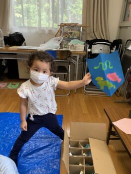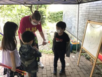 今日は新しい先生のLorelei先生が来てくれました!桜組さんとのCircle timeとActivityでは、楽しい歌を歌ったり、形や海の生き物について教えてもらったりゲームをしました♪ また藤組さんとアーチェリーをしたり、 一緒におもちゃで遊びました。 外遊びの様子です。 スコットランドの家紋作り3日目は桜組さんです。絵の具とスポンジでステンシルをしました。 子どもの森ファミリー❤️