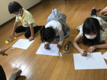 藤組さんはLorelei先生とのcircle time & Activityで、サッカーボールを使った自己紹介と動物について教えてもらい、絵を描いたり、Memory gameとShark gameをしました。