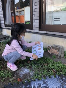 After talking about Chameleons and colours we went to the mini ground to look for AAAALLL THE HIDDEN CHAMELEONS!!!!