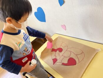 We started by reading the story of the day: Bob lost his hearts! Can you help him find them?