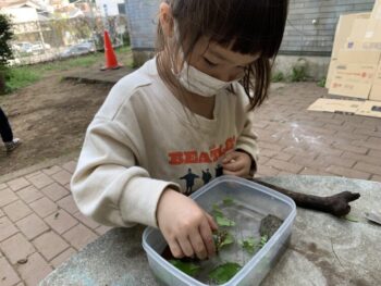 Junko sensei brought tadpoles and one little turtle !!!!